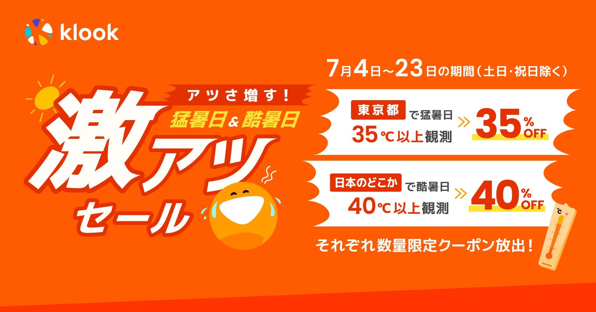 猛暑日で35%OFF!酷暑日で40%OFF!Klook夏のお出かけ応援企画「激アツセール」開催
