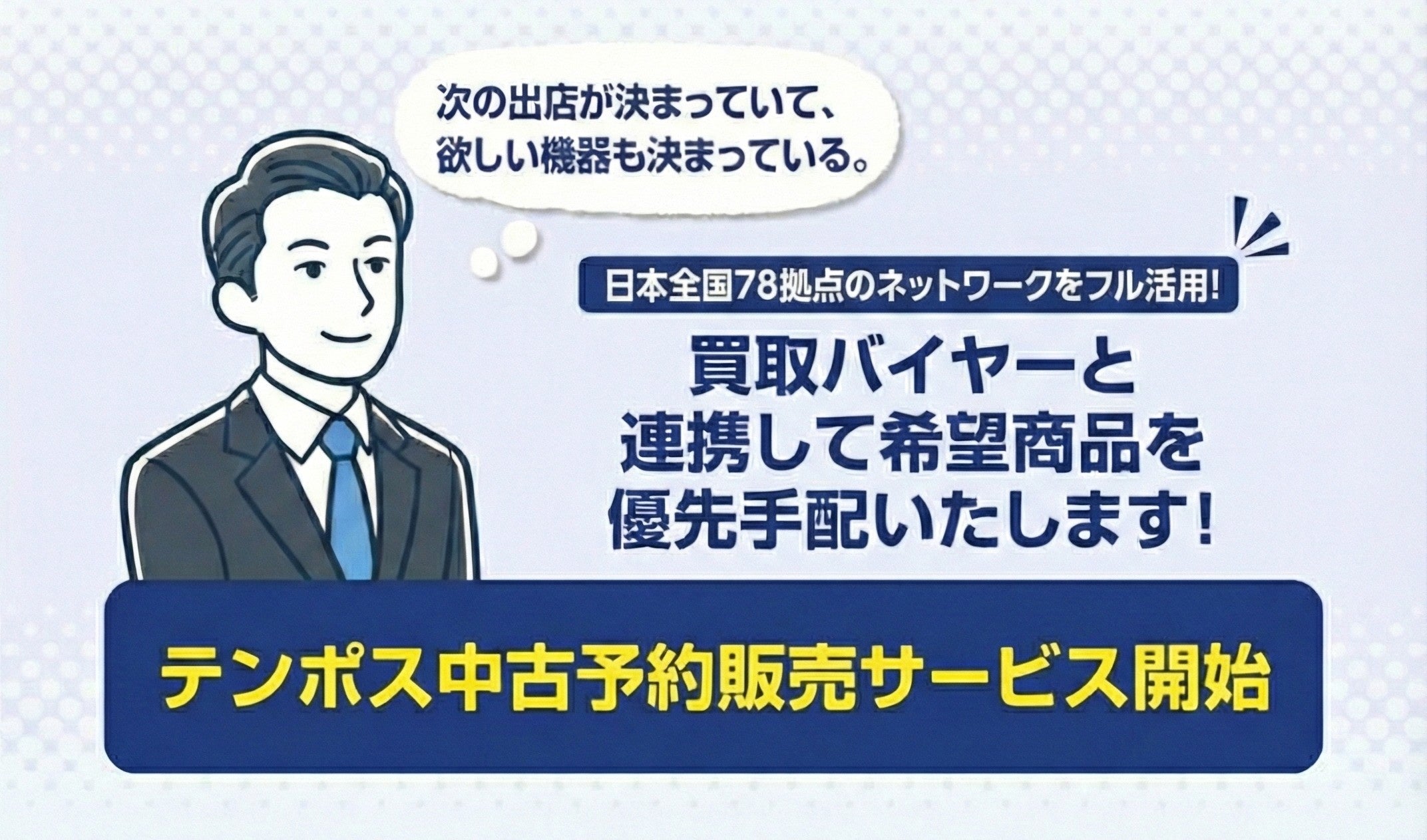 【業界初】中古厨房機器も“受注販売”の時代へ。テンポス法人ドットコム、未入荷の機器を市場に出る前に予約・購入できる「中古予約販売サービス」を12月9日に開始