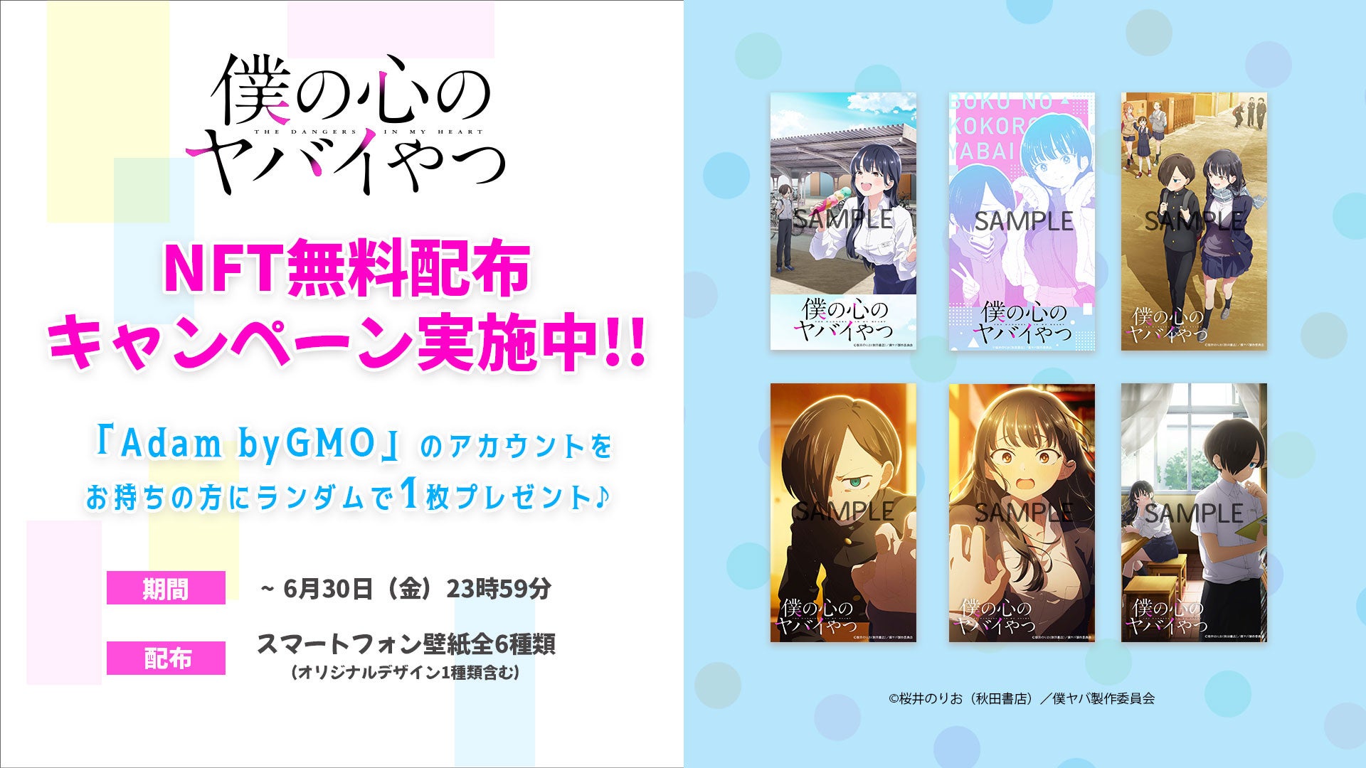 テレビ朝日系全国24局ネット“NUMAnimation”枠・BS朝日・CSテレ朝チャンネル1にて放送しているTVアニメ『僕の心のヤバイやつ』のスマートフォン壁紙にもなるNFT全6種類のランダムでの無料配布キャンペーンを「Adam byGMO」において6月30日(金)23時59分まで実施いたします。