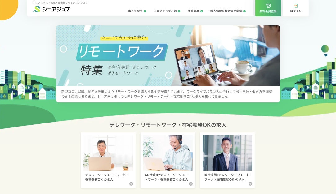 在宅勤務、テレワーク、リモートワークなどがOKの求人を集めた特集ページです。もちろん、すべてシニアに特化した求人です。