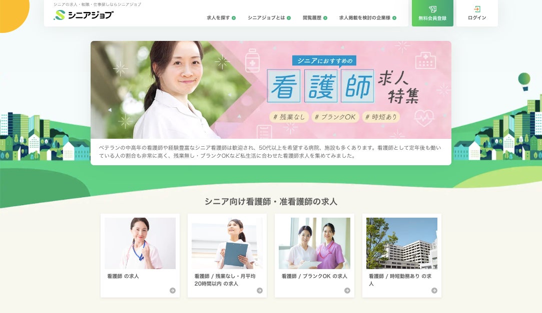 残業なし、ブランクOK、時短ありなどシニアの様々な働き方に合わせた看護師求人の特集ページです。