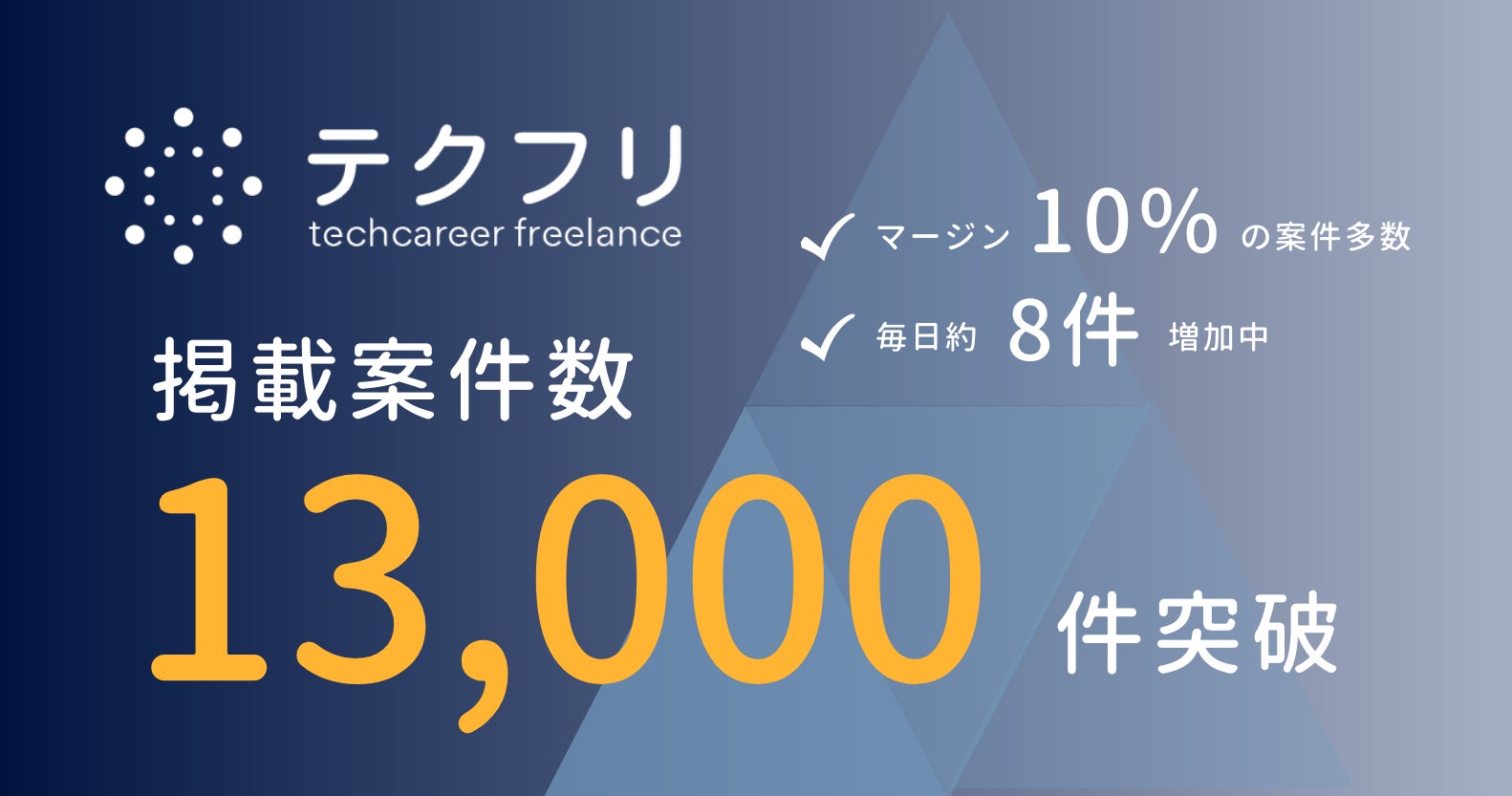 ITフリーランスの案件サイト「テクフリ」運営会社の案件掲載数13,000件突破!
