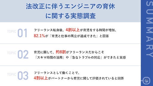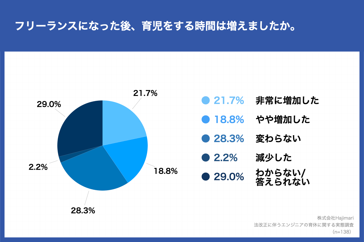 今回は現在子育てを行っているフリーランスエンジニア138名に対し、法改正に伴うエンジニアの育休に関する実態調査を実施いたしました。
