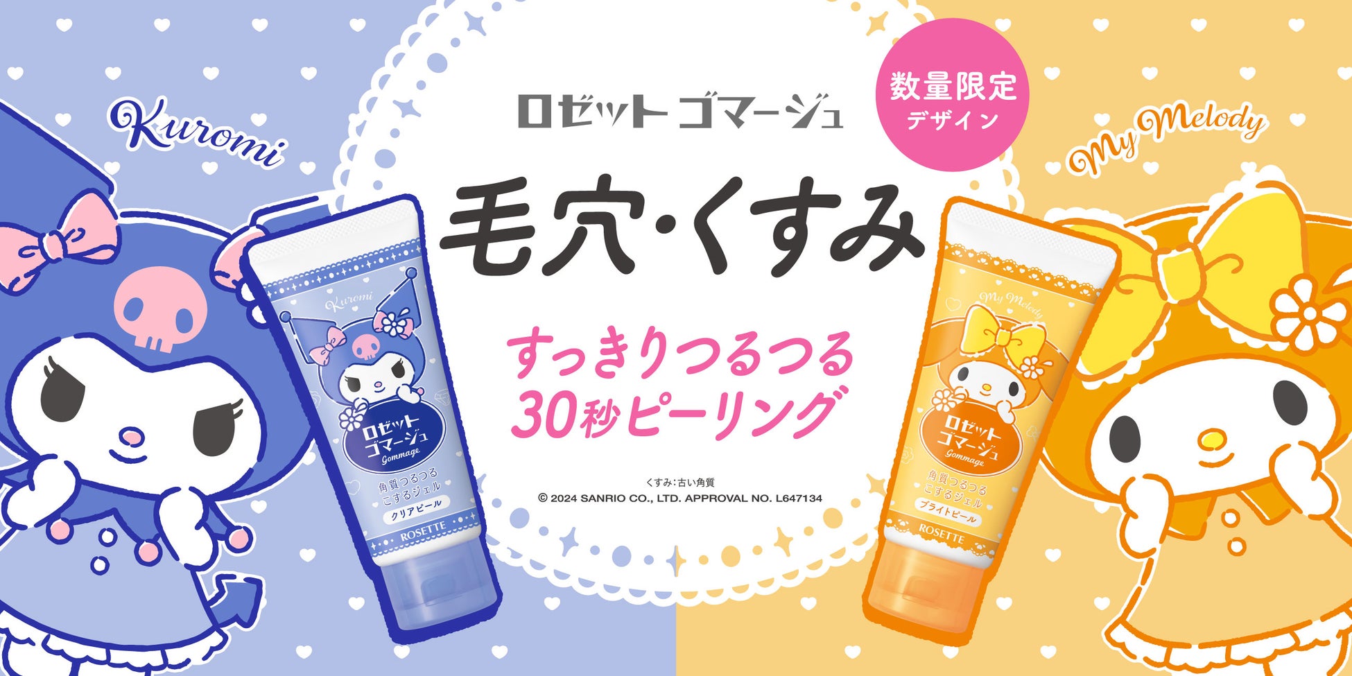 ロゼット株式会社(本社:東京都品川区、代表取締役社長:藤井敬二)は、ロングセラー角質ケアブランド「ロゼットゴマージュ」から、株式会社サンリオの大人気キャラクター「クロミ」「マイメロディ」とコラボレーションしたオリジナルデザインの「ロゼットゴマージュ クリアピール」「ロゼットゴマージュ ブライトピール」を、2024年5月27日(月)より全国のドラッグストア、バラエティショップ(※一部店舗を除く)、各公式オンラインショップ(ロゼットオンラインショップ、Amazon)にて、数量限定で発売いたします。さらに、今回のコラボレーションを記念して、オリジナルヘアクリップなど素敵なプレゼントが当たるSNSキャンペーンも開催予定です。
