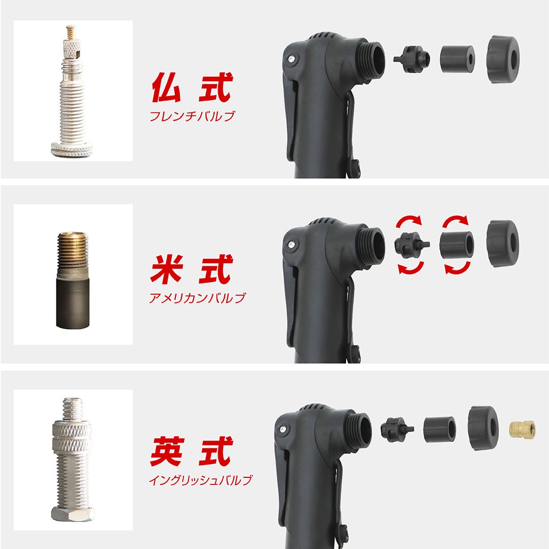 ▶パーツやアダプターを替えることで、すべての仏式・米式・英式バルブに対応