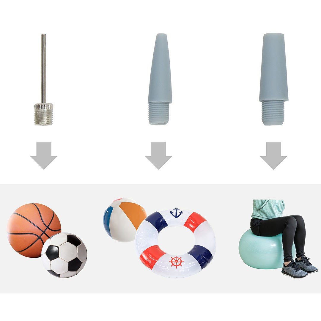 ▶ボールやエアマット、浮き輪などに使用可能。ノズル収納ケース付き
