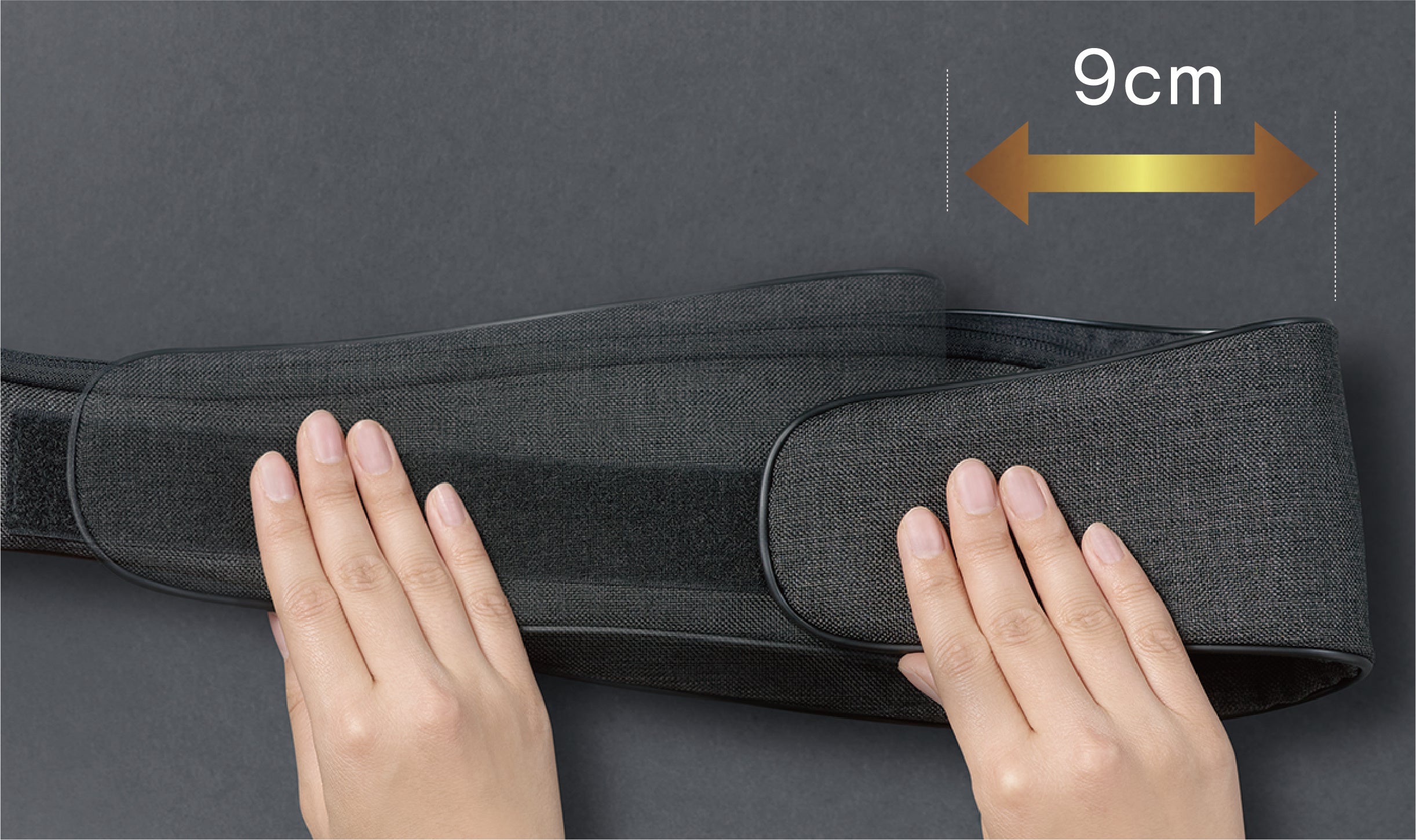 面ファスナーだから、ベルトの長さを体格に合わせて調節が可能。体によりフィットさせてマッサージができます。