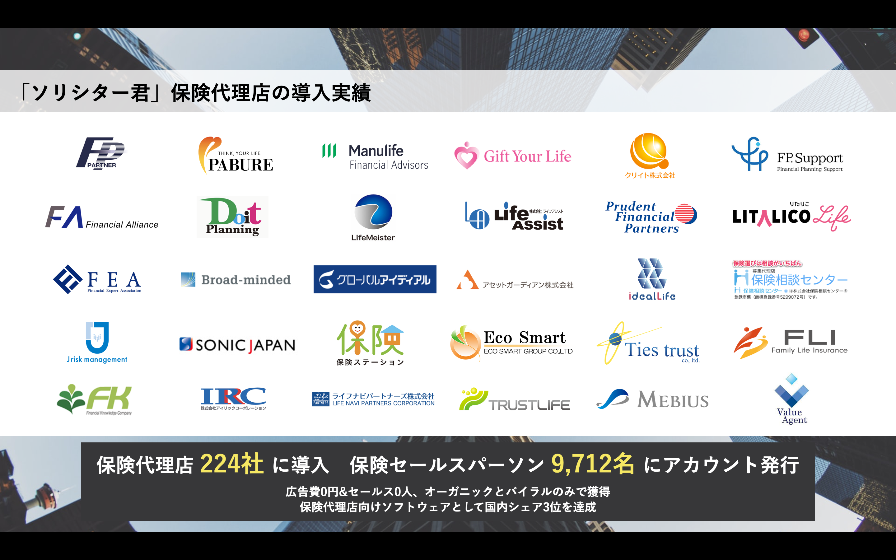 「ソリシター君は大規模保険代理店を中心にご支持頂き、ユーザー保険代理店200社を超えることができました。