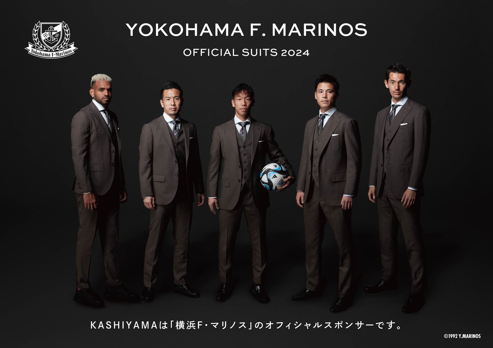『KASHIYAMA』は、2023年シーズンより「横浜F・マリノス」とオフィシャルスポンサー契約を締結し、2024年シーズンも引き続き選手および監督・コーチ、クラブ関係者が試合移動時や公式行事の際に着用するスーツを提供、クラブチームの活躍をサポートしていきます。