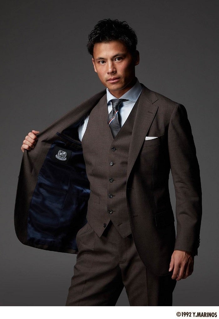 オフィシャルスーツは、チーム所属の喜田 拓也キャプテン、水沼 宏太選手、飯倉 大樹選手の3名がデザインやカラーを監修しました。デザインは、肩パットなしのアンコン仕立てでイージーな着心地を実現し、生地にもこだわり、ナチュラルストレッチのウール100%素材でトレンドカラーのライトブラウンを採用した、スタイリッシュな品格のあるスーツを提案します。