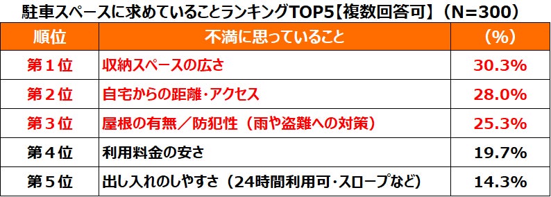 2台以上所有する方のうち3割以上が「収納に不満」と回答!~不満で多かったのは「収納スペースの広さ」や「自宅からのアクセス」~