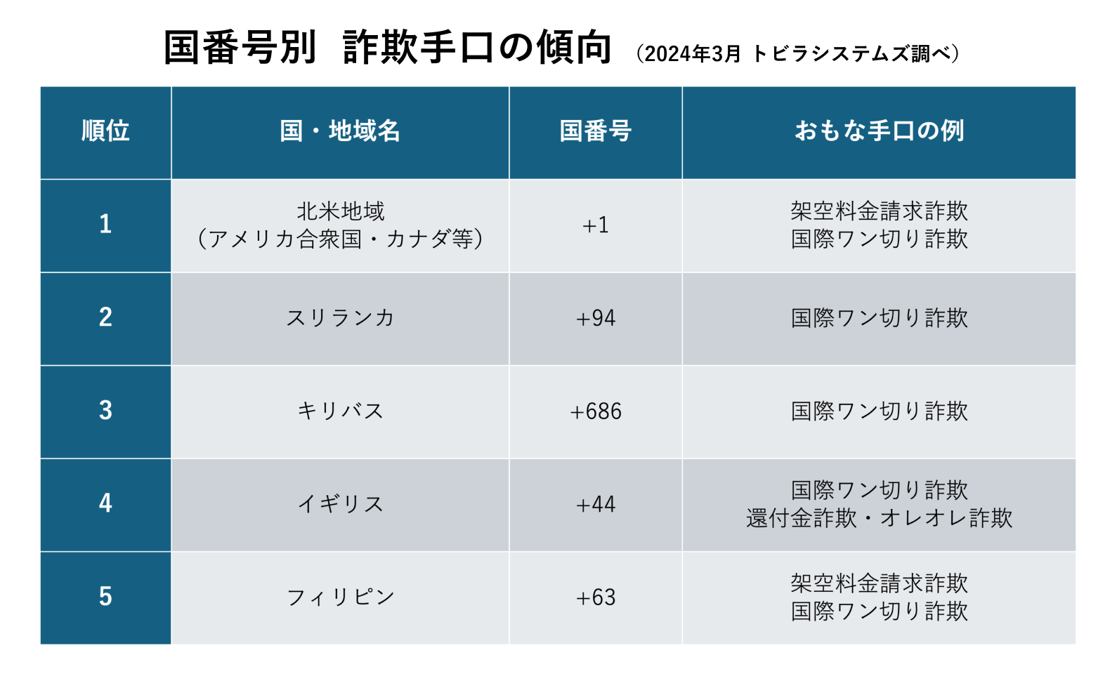 ○国際電話番号を使った詐欺、国番号ごとに異なる手口の傾向