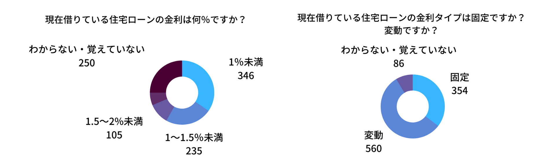 『住宅ローンを見直したいと思いますか』という質問については、見直したいと思う286名(28.6%)、見直したいとは思わない476名(47.6%)、わからない238名(23.8%)でした。