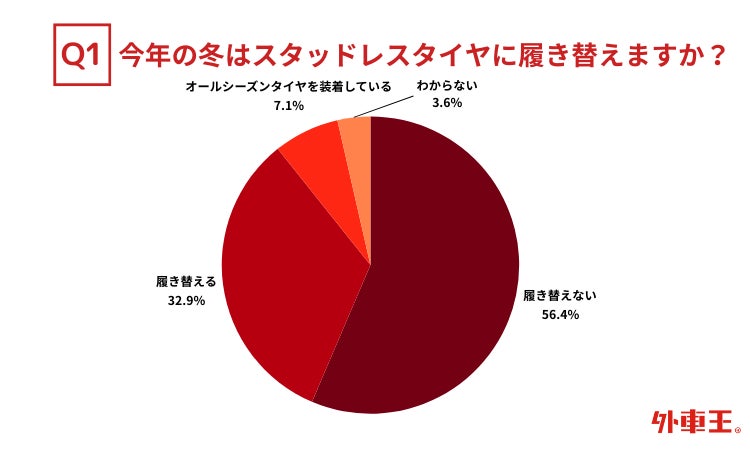 ・調査内容:Q1.今年の冬はスタッドレスタイヤに履き替えますか? Q2.Q1で回答した理由を教えてください。 Q3.スタッドレスタイヤに履き替える時期を教えてください。