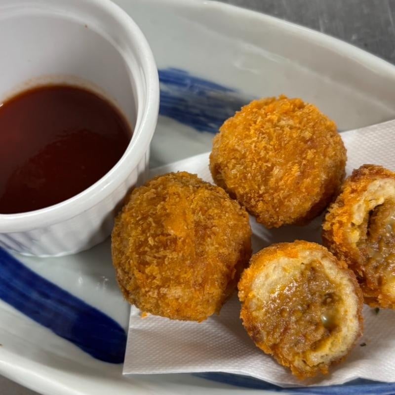 ピリッとスパイシーなひと口サイズの揚げボール。外はカリッと中はジューシーで、ビールとの相性抜群!