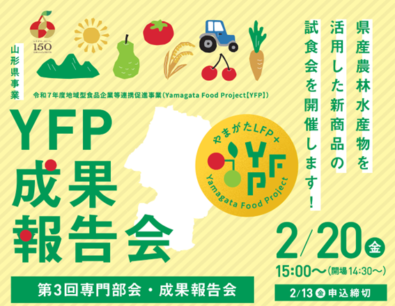 流通経済研究所(東京都千代田区:理事長 加藤 弘貴)はこの度、2月20日(金)にYFP(やまがた フード・プロジェクト)の成果報告会・第3回専門部会を開催いたします。本成果報告会は、「令和7年度山形県地域型食品企業等連携促進事業」の一環で実施しております。