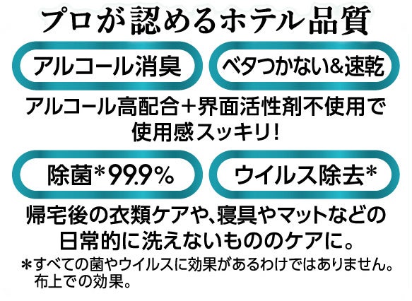 アルコール消臭×界面活性剤ゼロ処方で、乾きが速く、ベタつかない!ホテルクオリティの消臭剤にたっぷり使える企画品が仲間入り!