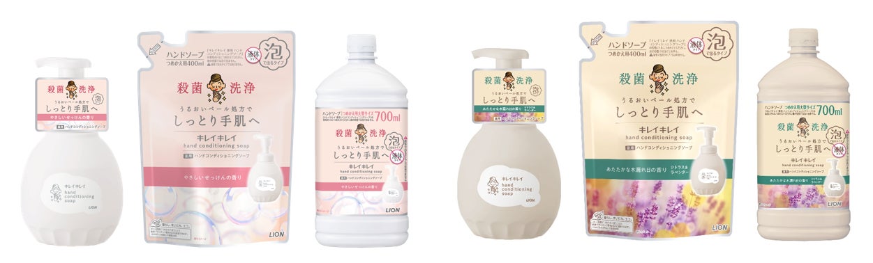 そこでこの度、『キレイキレイ薬用ハンドコンディショニングソープ』に、さわやかで落ち着きのある香りを採用した『あたたかな木漏れ日の香りシトラス&ラベンダー』を加えて、新発売します。従来の『やさしいせっけんの香り』と選べる2つの香りのラインアップで、手洗いが楽しい時間となり、前向きに行える習慣となるよう、サポートしてまいります。