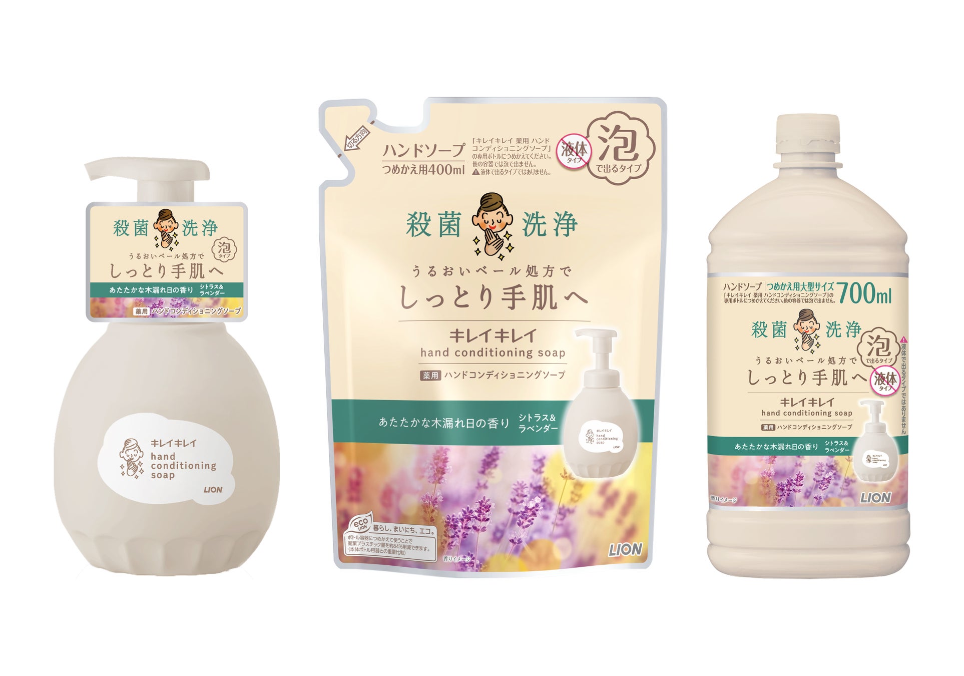 ライオン株式会社(代表取締役兼社長執行役員:竹森 征之)は、殺菌・洗浄効果とうるおいベール処方でしっとり手肌へ導く『キレイキレイ薬用ハンドコンディショニングソープ』に、さわやかで落ち着きのある香りを採用した『キレイキレイ薬用ハンドコンディショニングソープ あたたかな木漏れ日の香りシトラス&ラベンダー』を新たにラインアップに加えて、2024年10月9日(水)から新発売いたします。