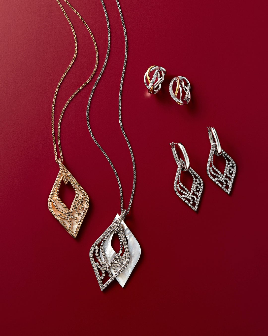大小重なりあう様々な形の雪の結晶は、きらきらと輝き華やかさを演出。繊細なデザインが大人の装いにエレガントさをプラスします。気分を高めてくれるアイテムは、自分へのご褒美や大切な方へのギフトにもおすすめです。