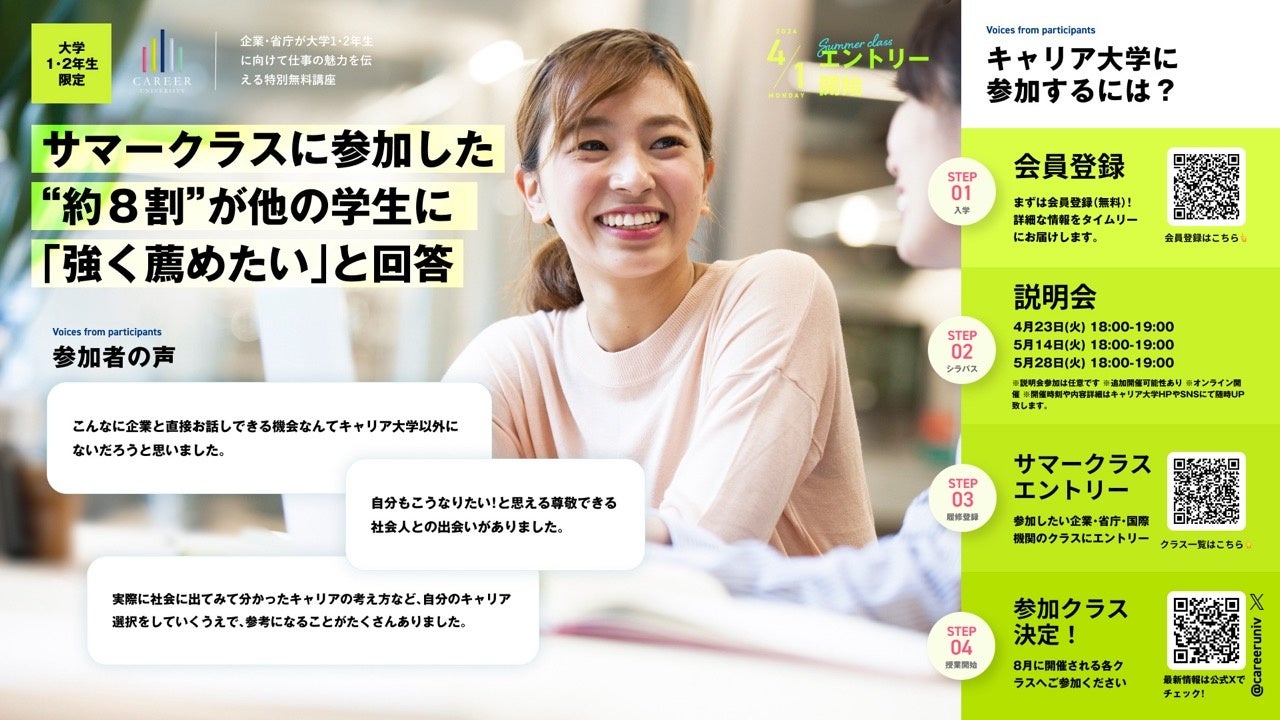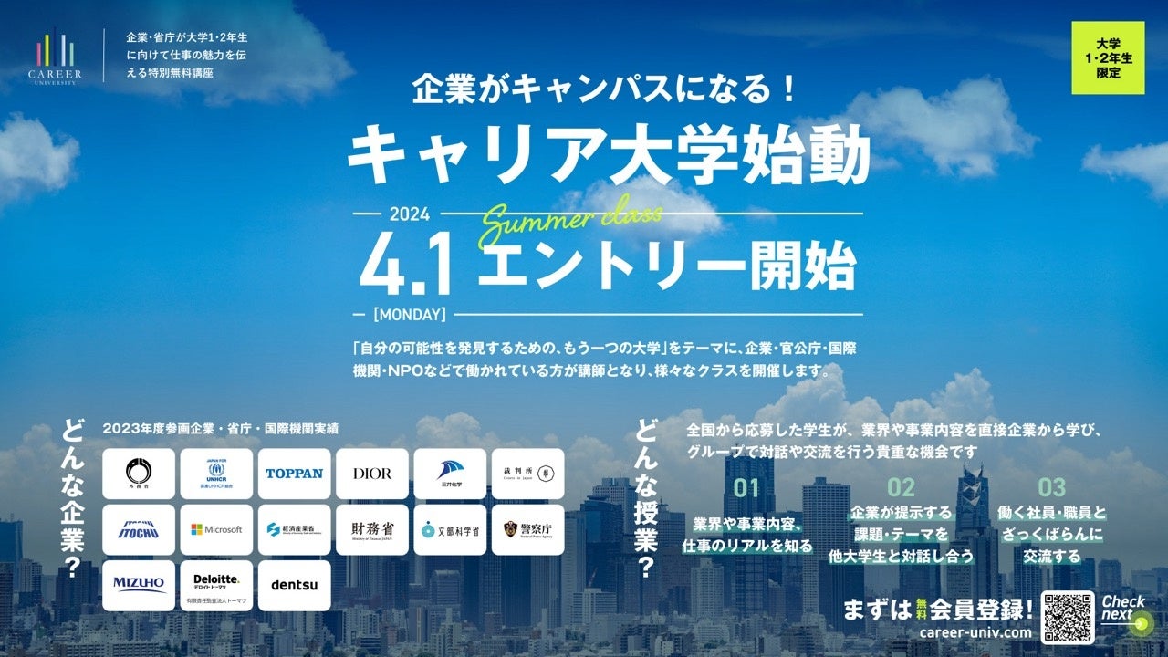 大学1、2年生を対象に行う特別授業企画「キャリア大学」、2024年度の参加エントリーを4月1日(月)より開始