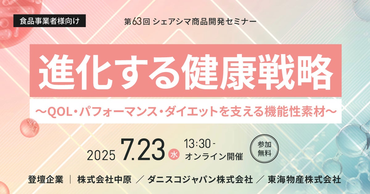【第63回シェアシマ商品開発セミナー】進化する健康戦略~QOL・パフォーマンス・ダイエットを支える機能性素材~