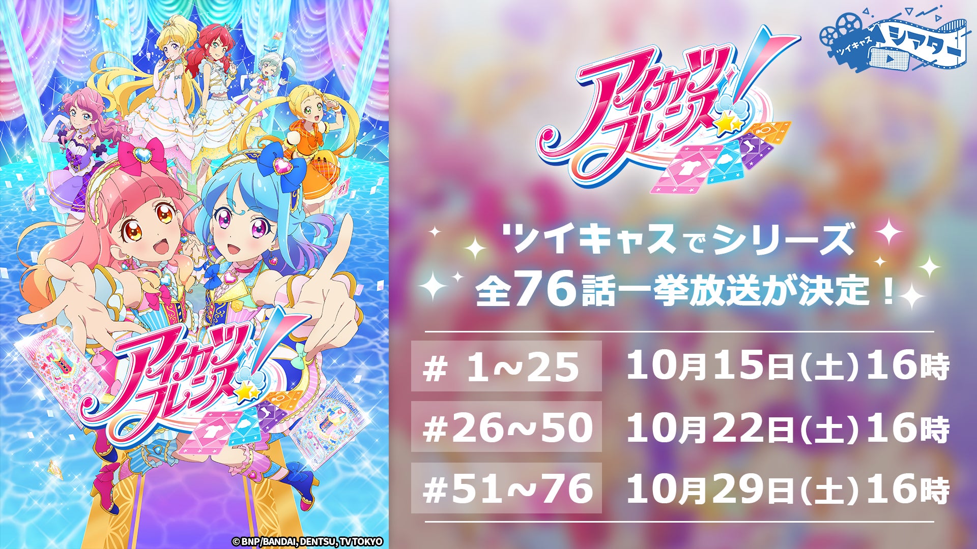来場200万人突破!ツイキャスのアイカツシリーズ放送10月15日から「アイカツフレンズ!」全76話を3週連続ノンストップ、計31時間の一挙放送が決定!