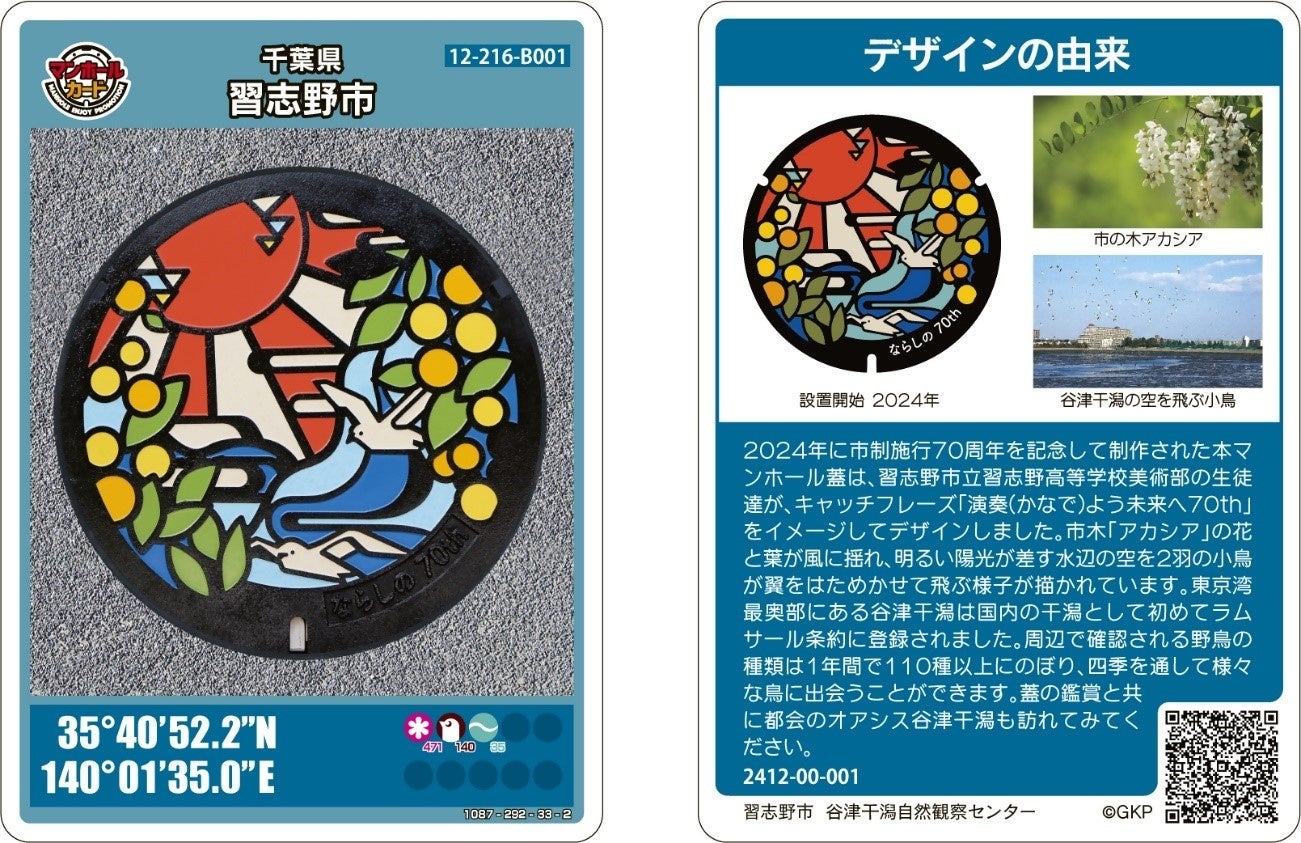 【千葉県習志野市】市制施行70周年記念デザインマンホールカードが完成しました!!