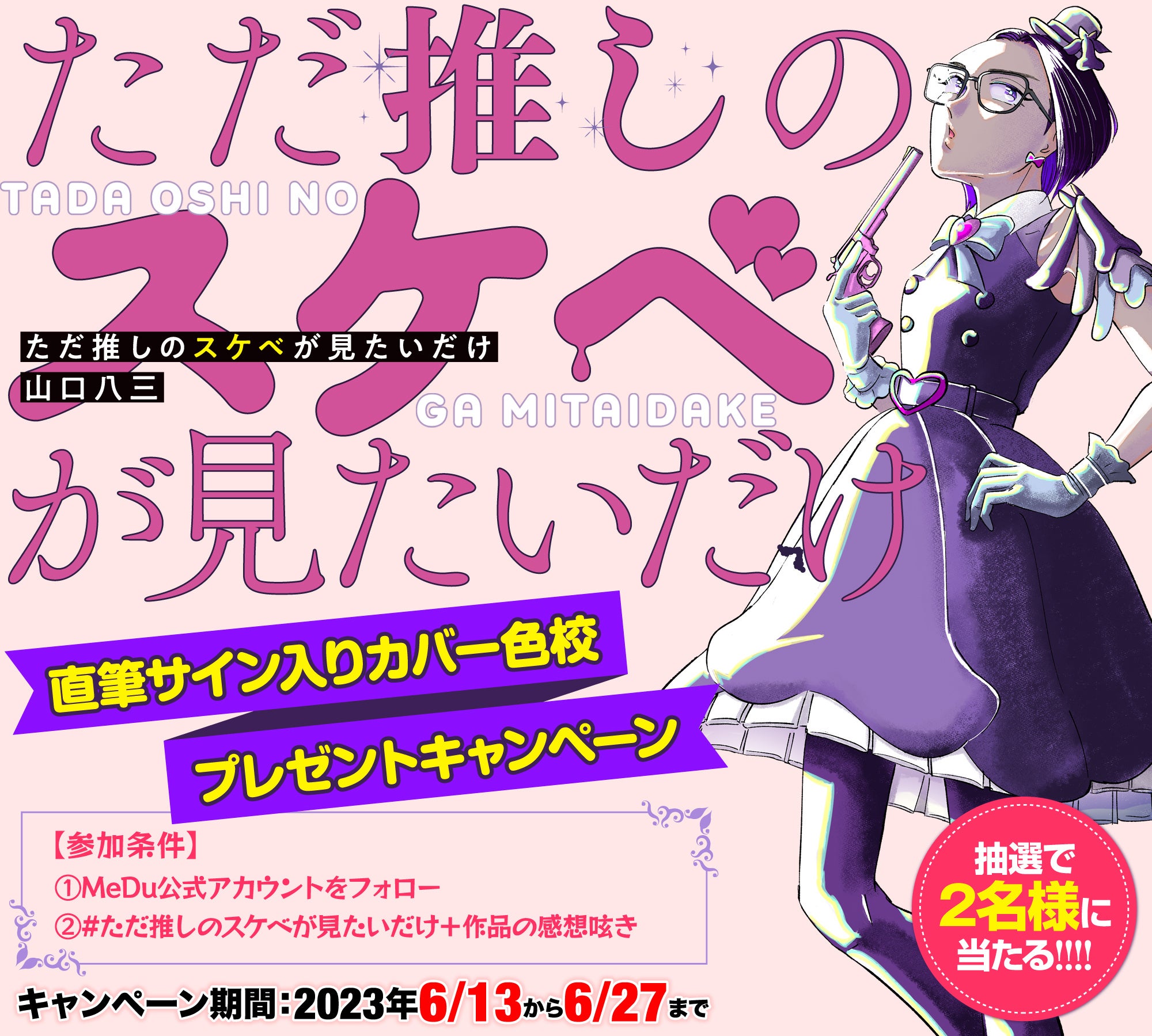 期間中、MeDu公式アカウントをフォロー&ハッシュタグ「#ただ推しのスケベが見たいだけ」を付け作品の感想をツイートしてくださった方の中から2名様に直筆サイン入りカバー色校をプレゼントいたします。