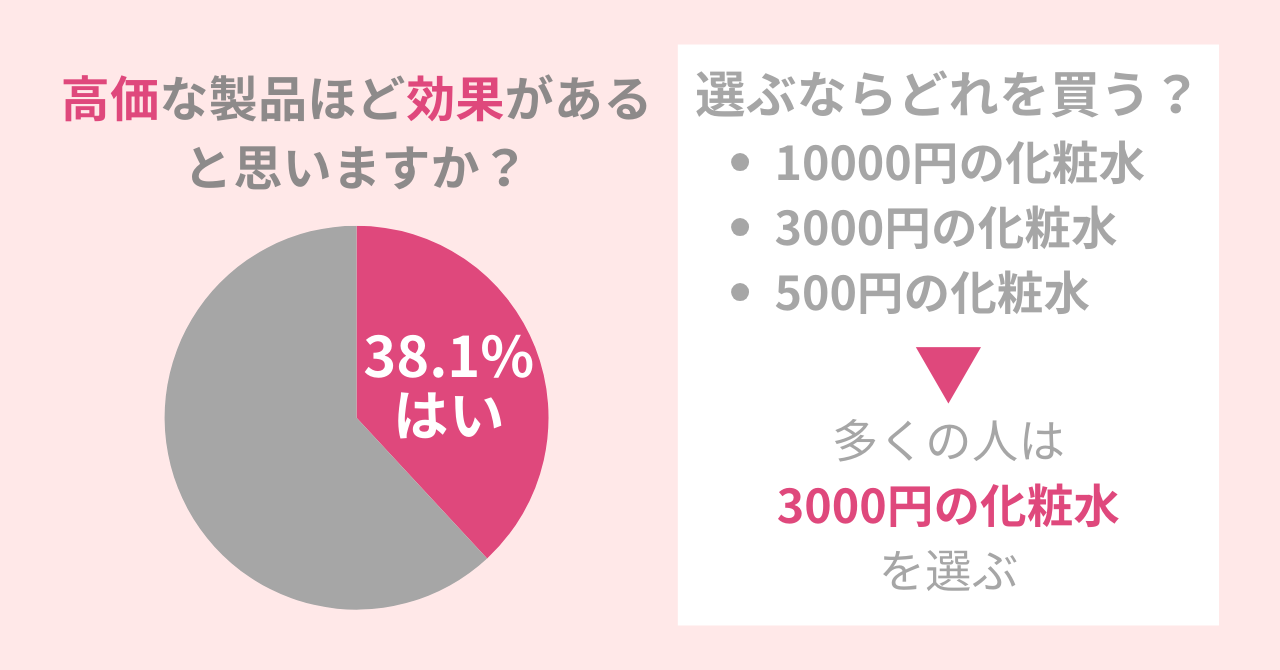 38.1%の女性が「高価な製品ほど効果がある」と思う
