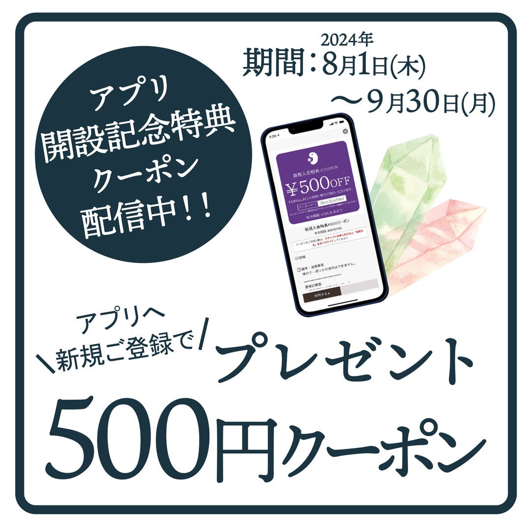 鉱物ラボアプリのリリースを記念して、2024年8月1日(木)~9月30日(月)までにアプリ新規登録された方へ500円クーポンをプレゼントいたします。