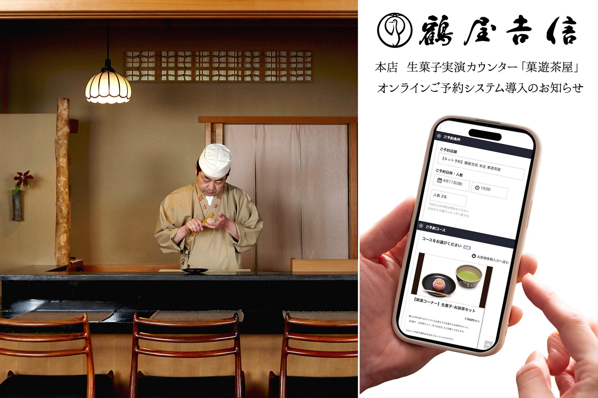 菓子製造販売の株式会社 鶴屋吉信(つるやよしのぶ)(本社:京都市上京区、代表取締役社長:稲田慎一郎)は、京都・西陣の本店2階に開設中の生菓子実演カウンター「菓遊茶屋(かゆうぢゃや)」にて、2025年3月15日(土)より新しく「オンラインご予約システム」を導入、同日より受付を開始いたしました。