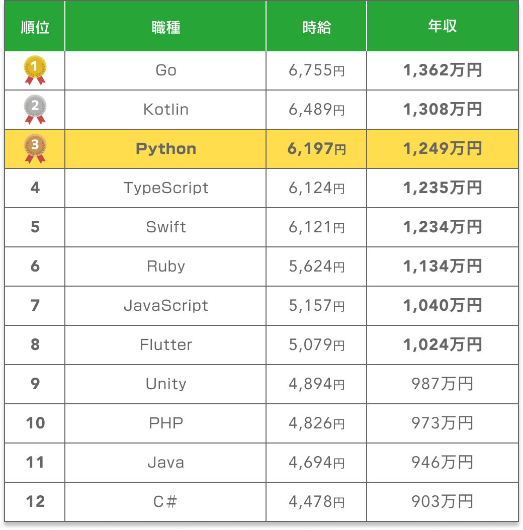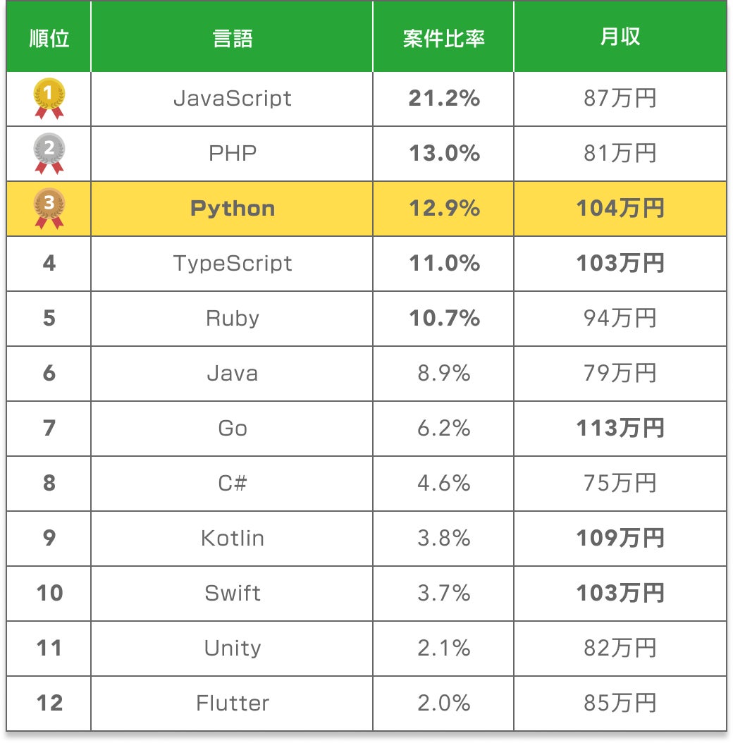 プログラミング言語の平均年収3位、案件数3位のPythonエンジニアを徹底調査