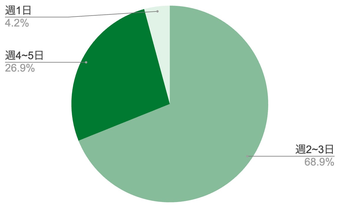 92%がリモートの案件で在宅勤務も可能、働く場所にしばられない自由な働き方に近づけます。案件の平均稼働日数は週2.4日、週1〜週3日の案件が多く、あともう1案件ほしい時など効率よく複業案件を探すことができます。