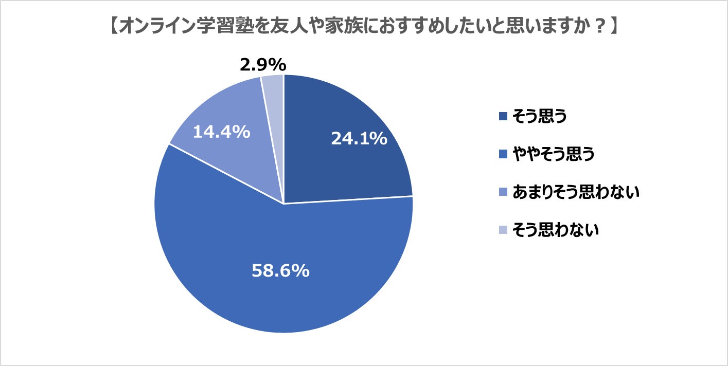 Topic3. 周囲の利用者増加を実感している割合は限定的な一方で、82.7%が「家族や友人にオンライン学習塾を勧めたい」と回答!