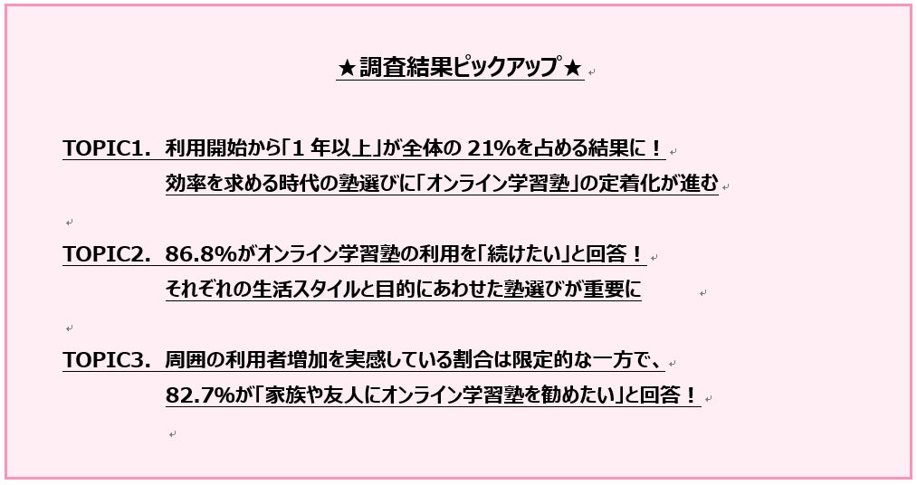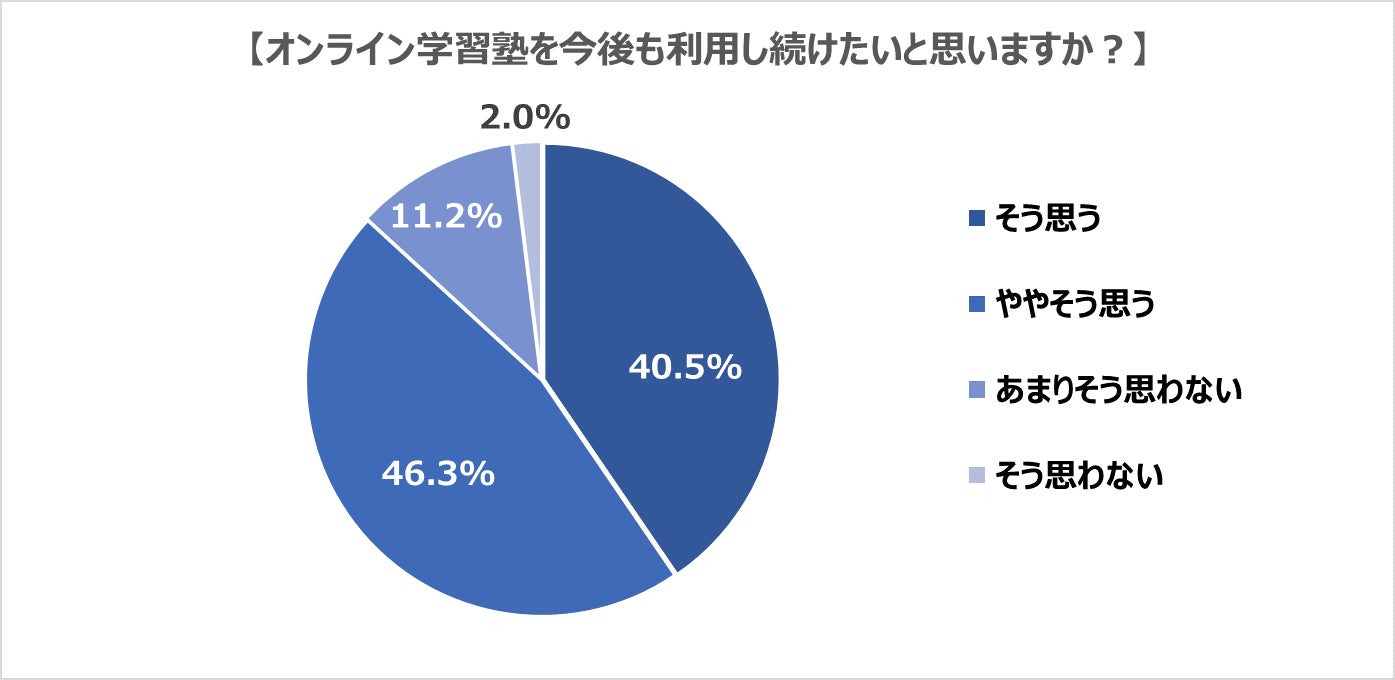 Topic2. 86.8%がオンライン学習塾の利用を「続けたい」と回答!それぞれの生活スタイルと目的にあわせた塾選びが重要に