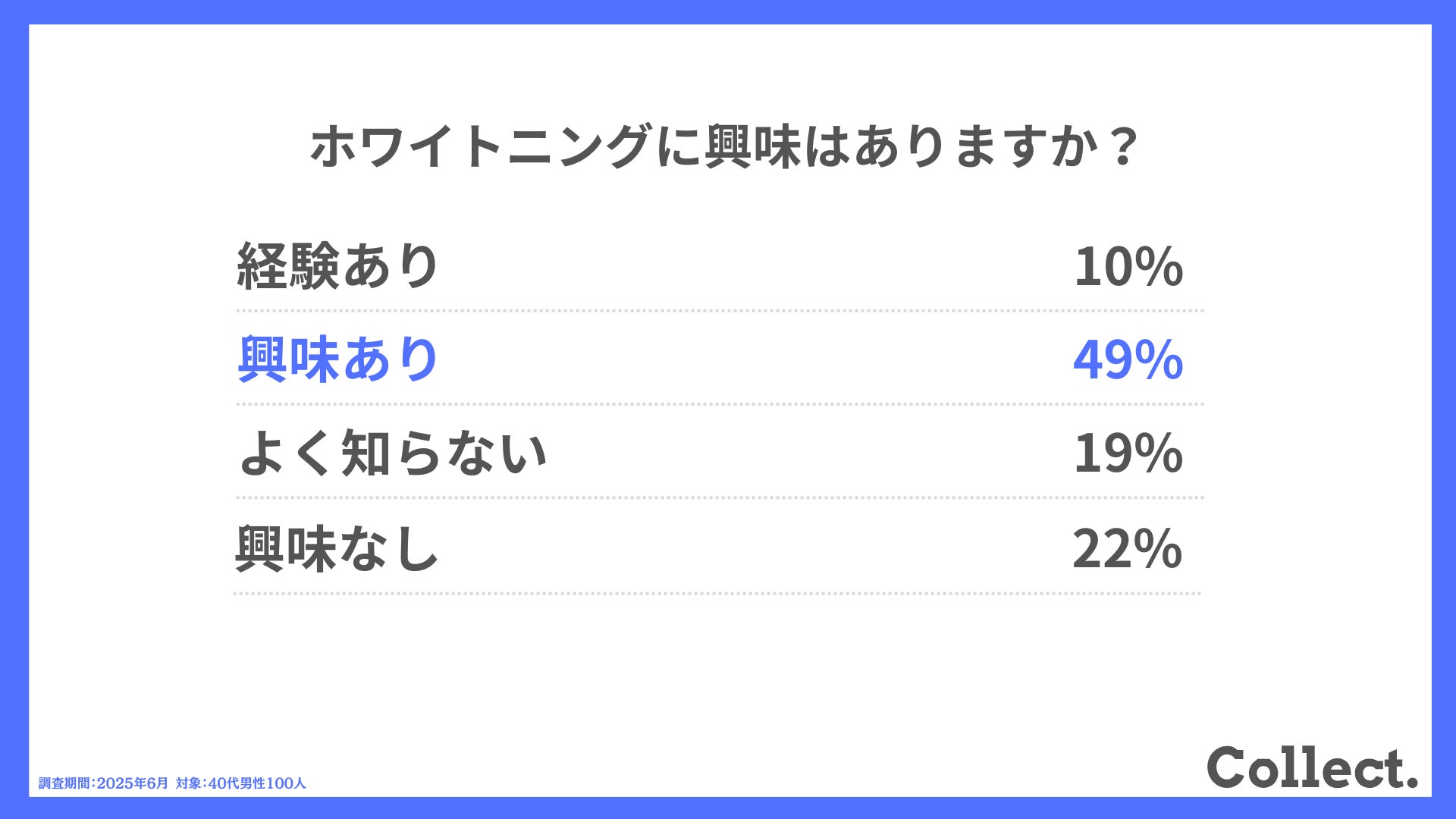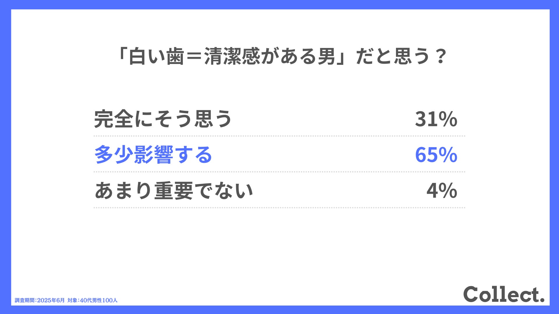 8割が歯の白さに不満を感じている?40代男性100人にアンケート調査【Collect.(コレクト)】