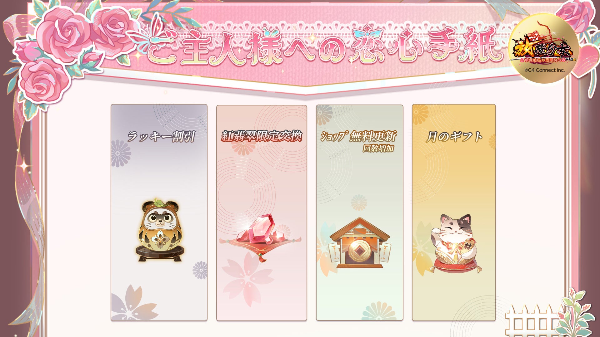 『ラッキー割引』『紅翡翠限定交換』『ショップ無料更新』『月のギフト』