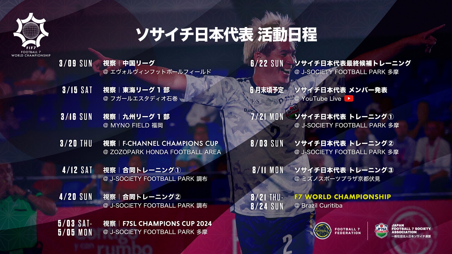大会へ向けたソサイチ日本代表の国内活動スケジュールが変更になりましたのでお知らせいたします。