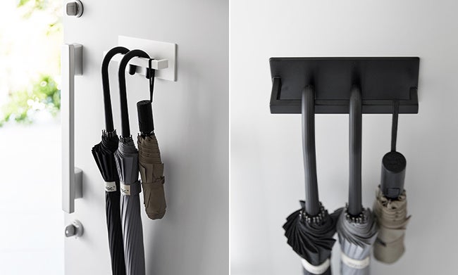 長傘や折り畳み傘を引っ掛けるだけ。