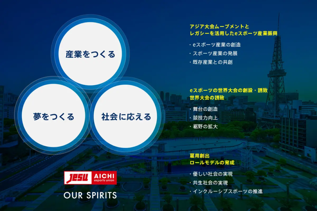 一般社団法人 愛知eスポーツ連合は、愛知を中心とする地域においてeスポーツを統括し、その普及振興を通して、経済社会の発展に寄与することを目的としております。「夢をつくる」「産業をつくる」「社会に応える」の理念に共感し、共に歩んでいける企業様と共に活動しております。