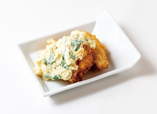 瀬戸内の藻塩・レモンピール・レモン果汁を下味に加え、レモンの余韻を長く楽めるからあげ。