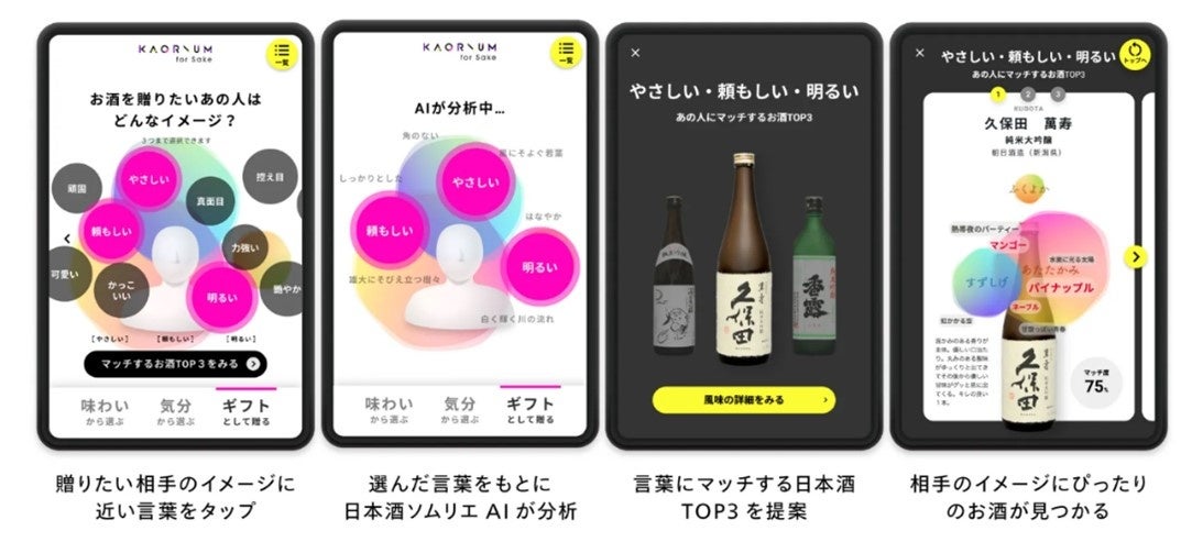 “贈りたい相手”のイメージに合わせてお酒をレコメンドするAIが