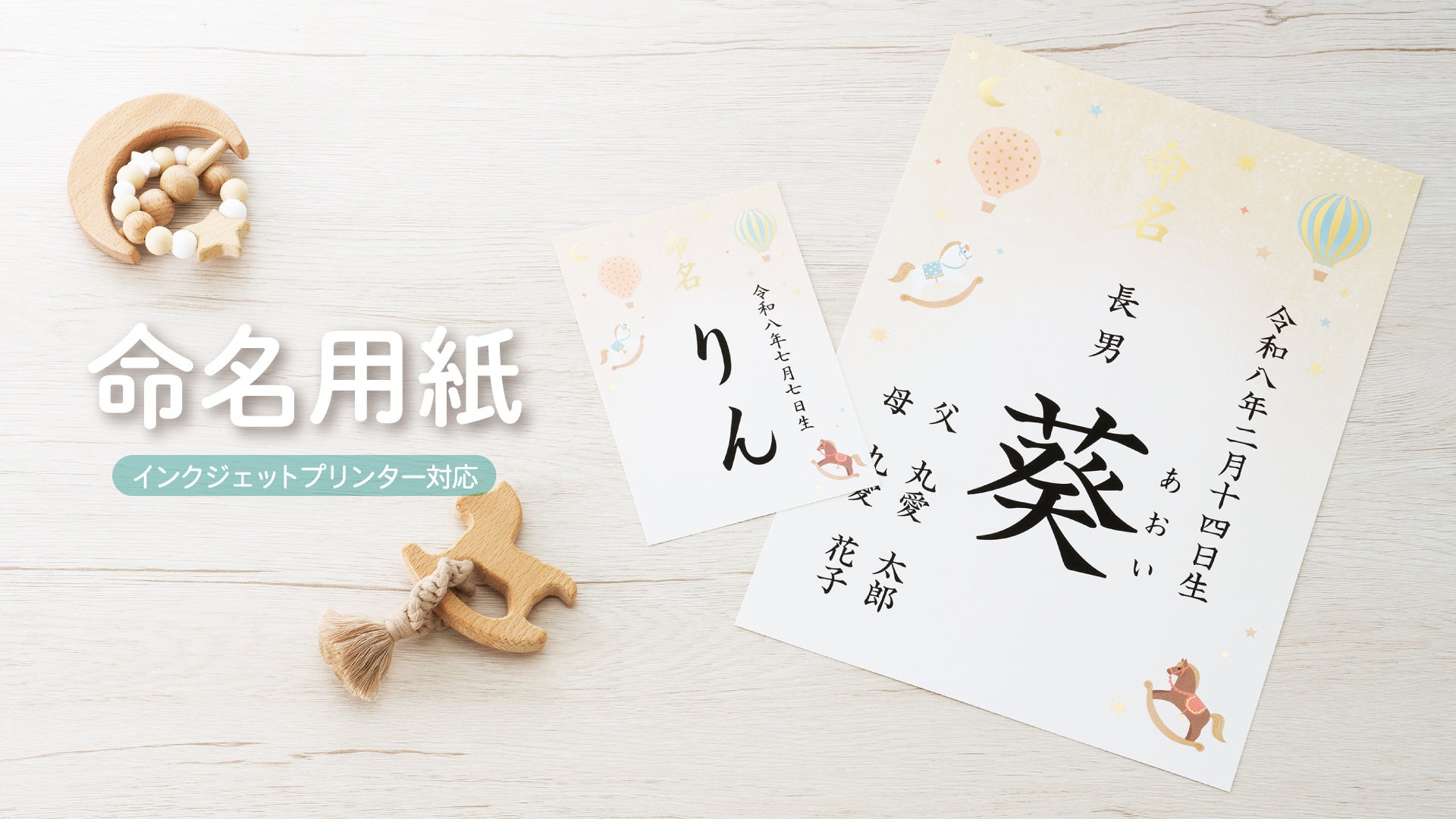 命名用紙とは、赤ちゃんの名前が決定した際に、その名前や由来などを記し、誕生の報告として親しい人へ贈ったり、家族の記念として保管したりするものです。近年は、命名の記念品としてオーダー型の多様なグッズが登場していますが、制作に時間を要するため、命名のタイミングに合わせて準備することが難しい場合もあります。一方、名前が決まったその日に書き留められ、即時に残せる命名用紙は、現在も一定の需要があります。