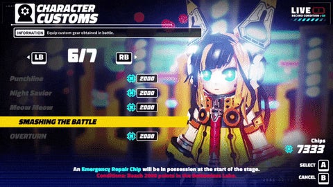 「SMASHING THE BATTLE」を装着すると、緊急修理チップを持った状態でステージを開始でき、HPが0になった際に1度だけ再起動できます。