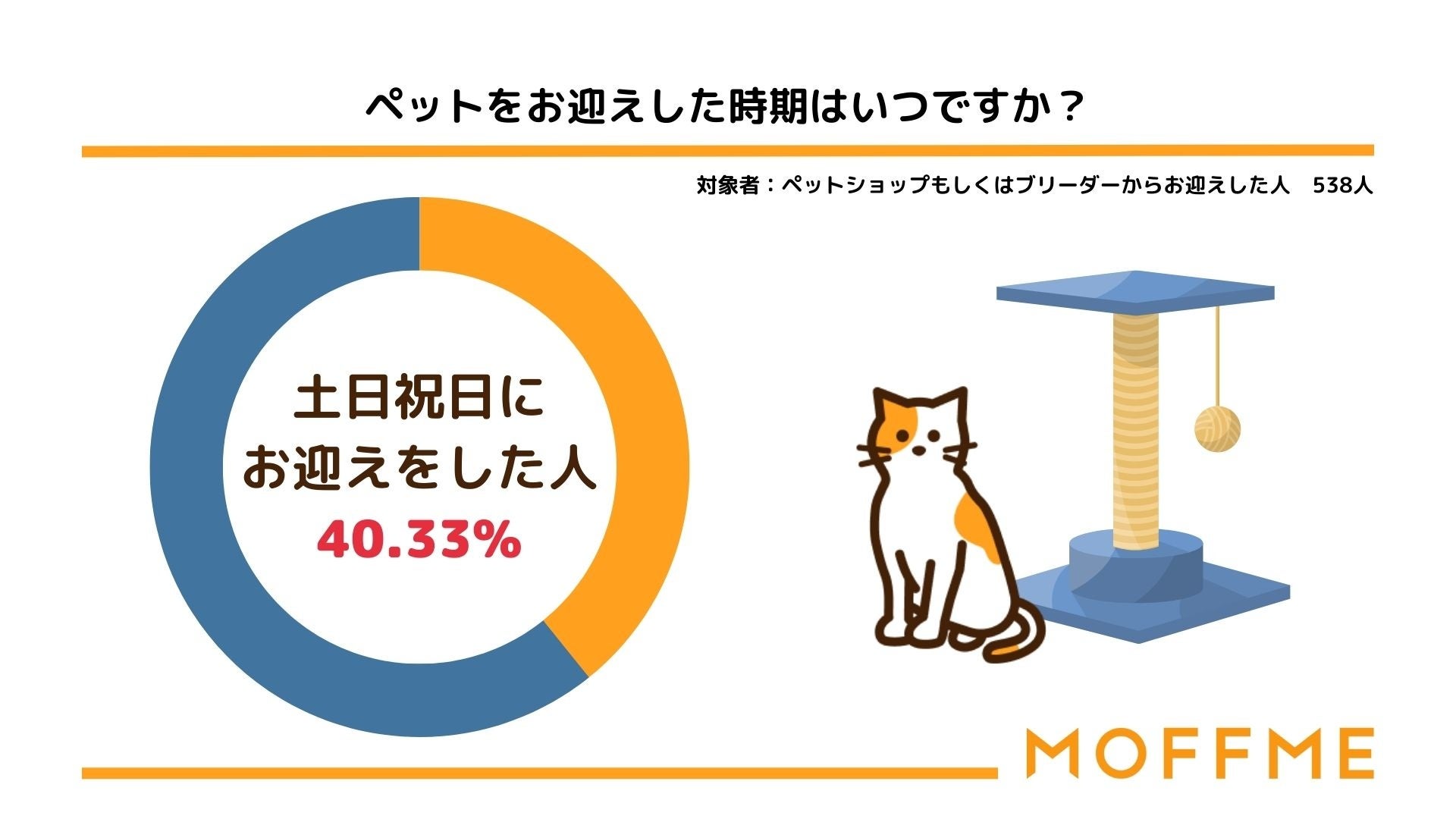 次に曜日別に調査をした所、お迎えした方の40%以上が土日祝日にお迎えしたと回答しました。