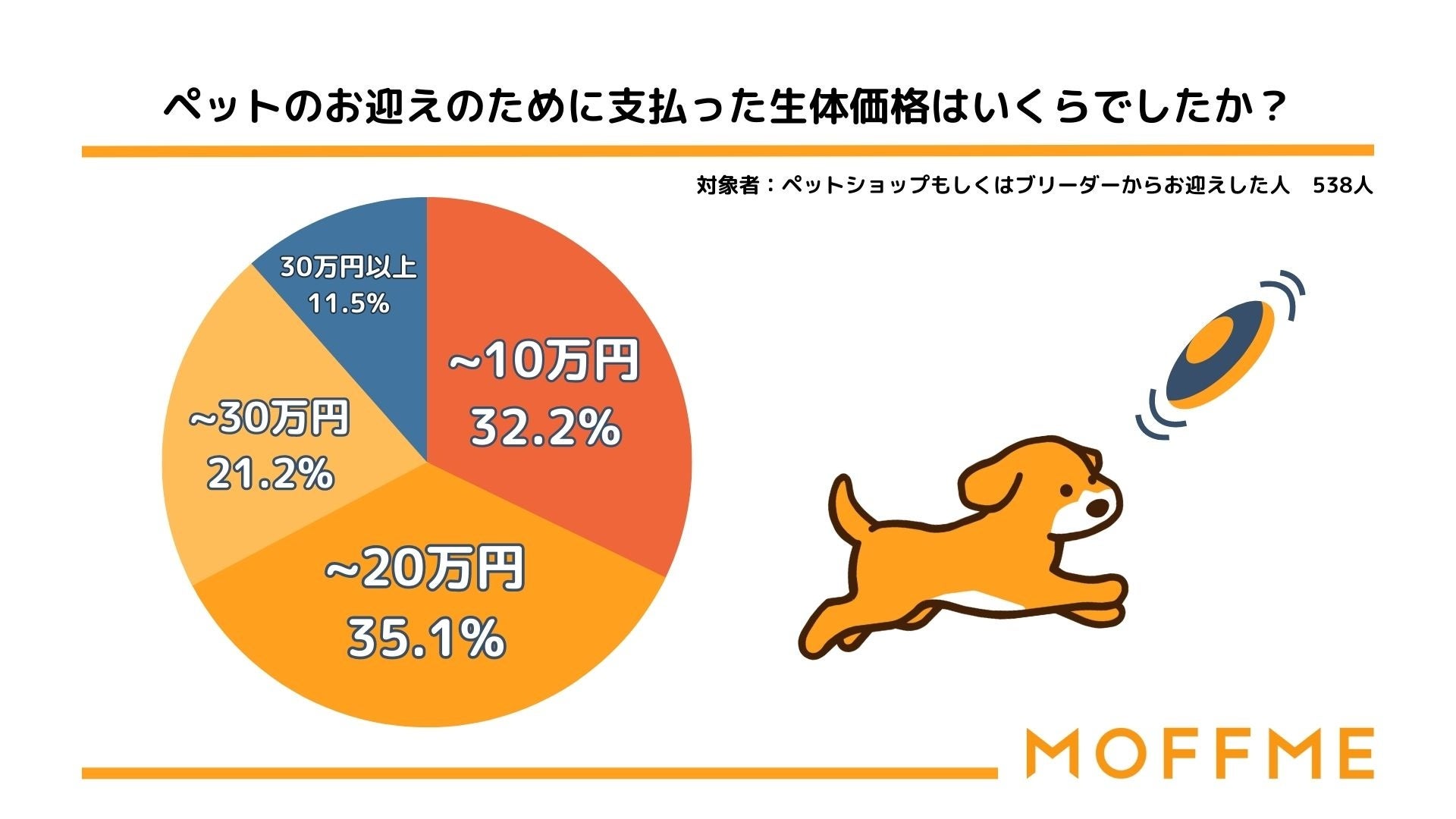 ペットのお迎えの生体価格で最も多いのは20万円以内で35%