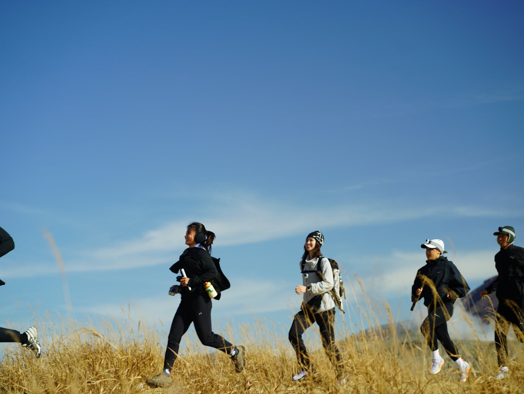 Insta360 X5を手に、周囲の壮大な景色と、必死に登る自分たちの姿を360度で記録しました。