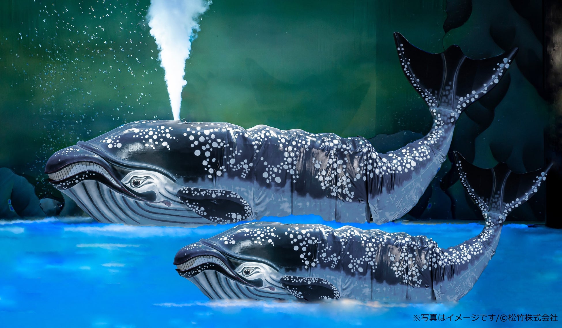 丸ビル1階の丸の内仲通りに面した吹き抜けのガラス張りの広場マルキューブには、歌舞伎の舞台に登場する様々な動物のなかでも特に巨大な“親子クジラ”が初お目見得いたします。本イベントのために特別にマルキューブにやってきた、親クジラの“かぶくじら”と子クジラの“くじら丸”。是非お近くで、親子クジラの大きさをご体感ください。親子クジラの展示は、5月27日(土)~6月2日(金)まで実施されています。