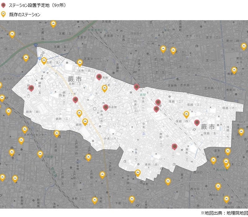 蕨市のステーション設置予定地と周辺エリアのステーション展開状況